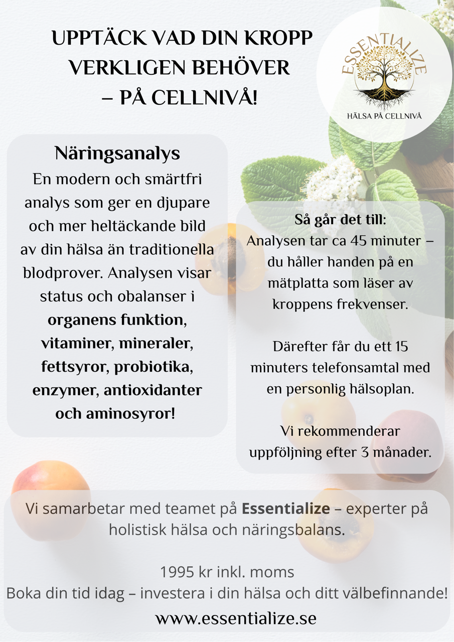 Nu är det fullt på bokningarna i Norrköping, det går att göra en distansmätning hos mig Madelene där jag hjälper dig att sätta dig i ordning, så sköter Essentialize resten. Kontakta mig för bokning, 0708-9696617 eller info@hudokroppshalsan.se
